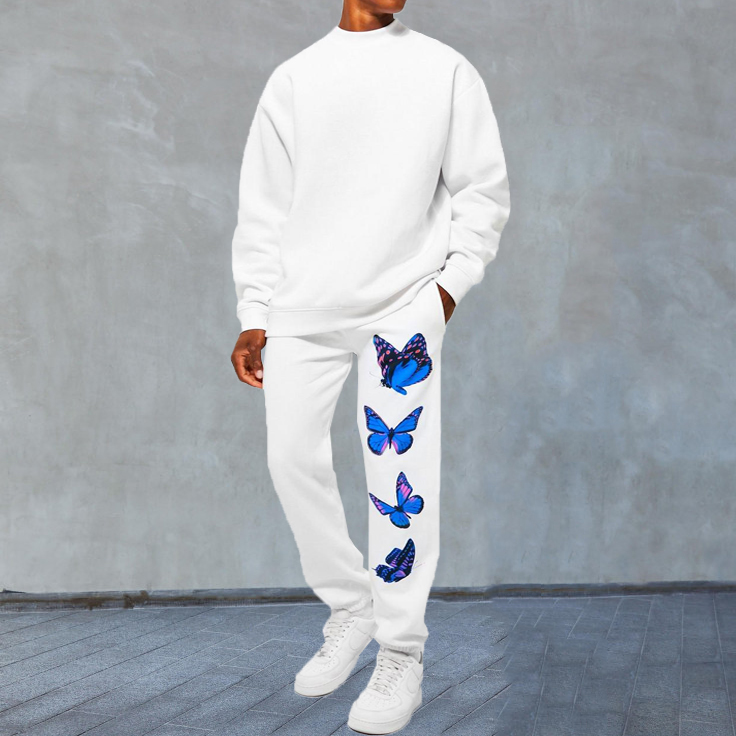 Casual Butterfly Print Sweatshirt And Pants Two Piece Set