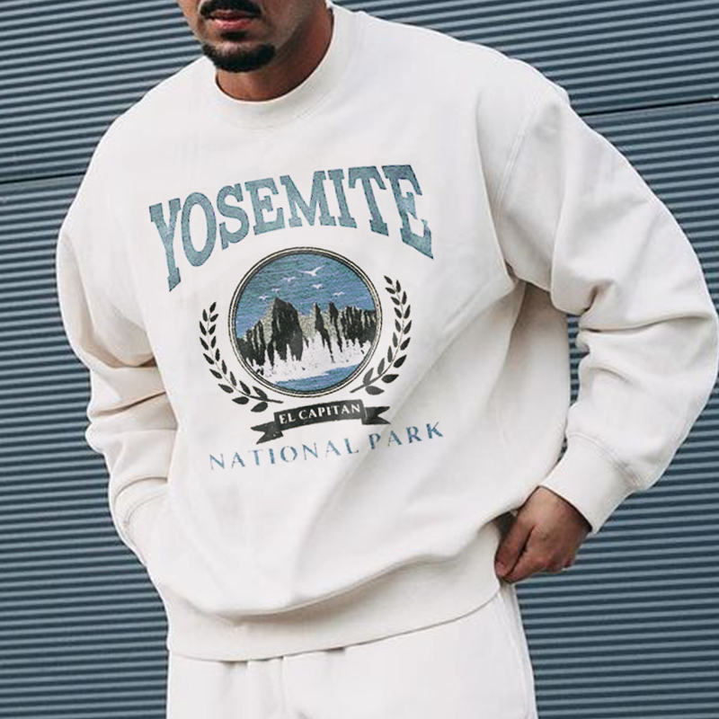 Casual Yosemite Print Long Sleeve Crewneck Sweatshirt