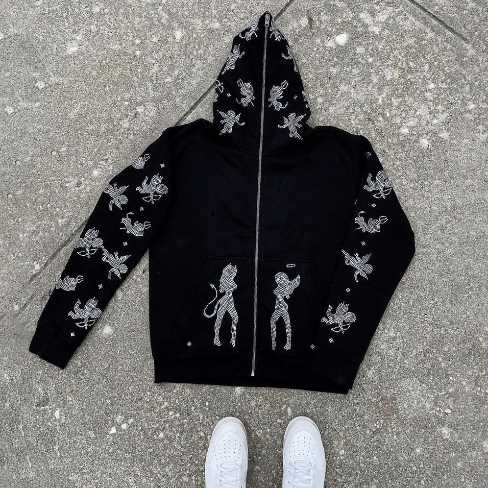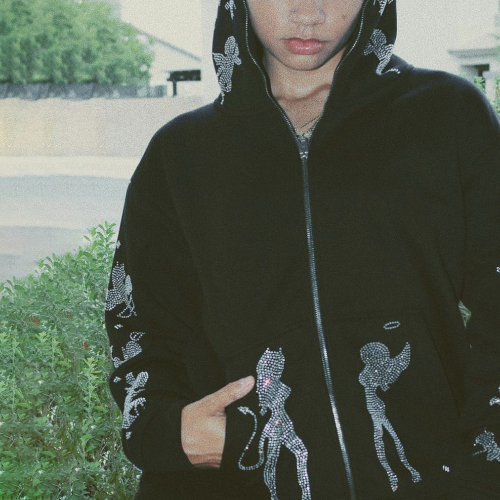 Fashion butterfly hot rhinestone zipper sweatshirt