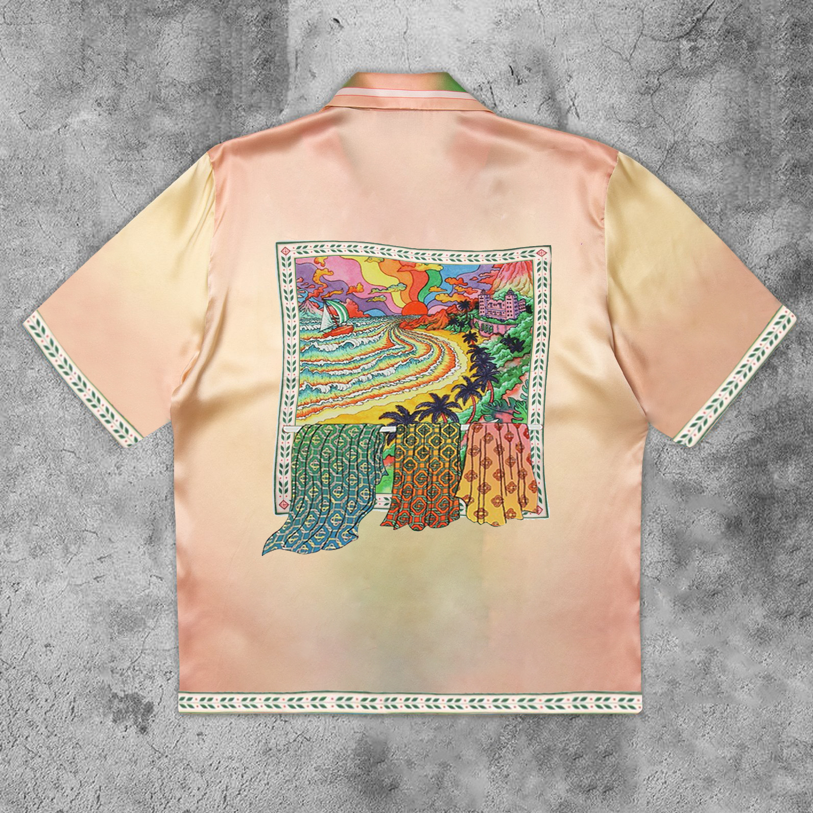 Literary Fan Fashion Print Silky Short Sleeve Shirt