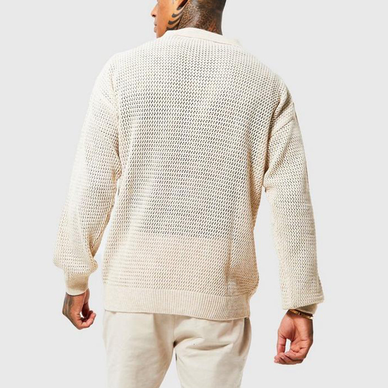 Men's Long-Sleeve Lapel Knitted Polo Sweater