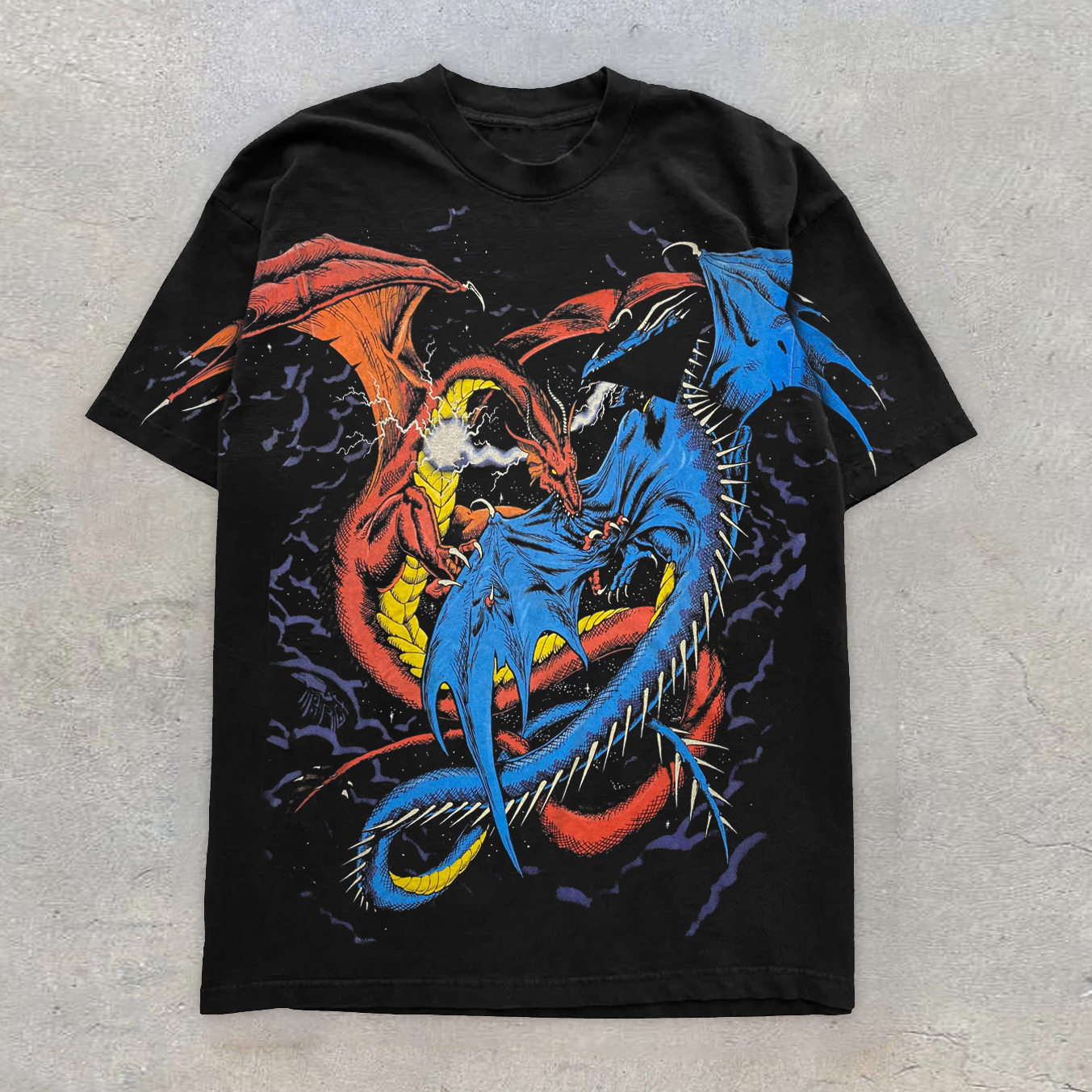 Retro Flying Dragon Print Street Style Short Sleeve T-Shirt