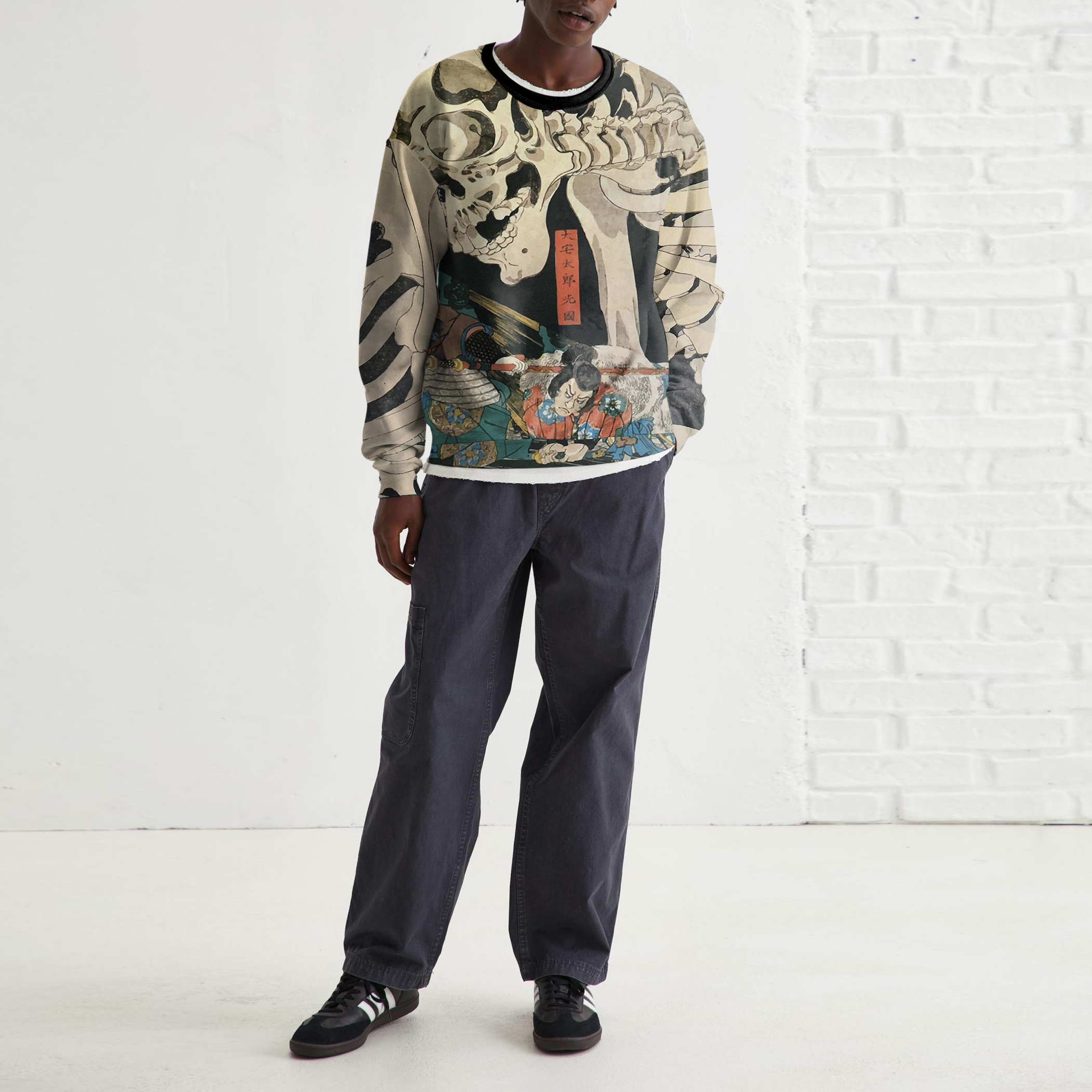 Retro style round neck long sleeve bone sweatshirt men's