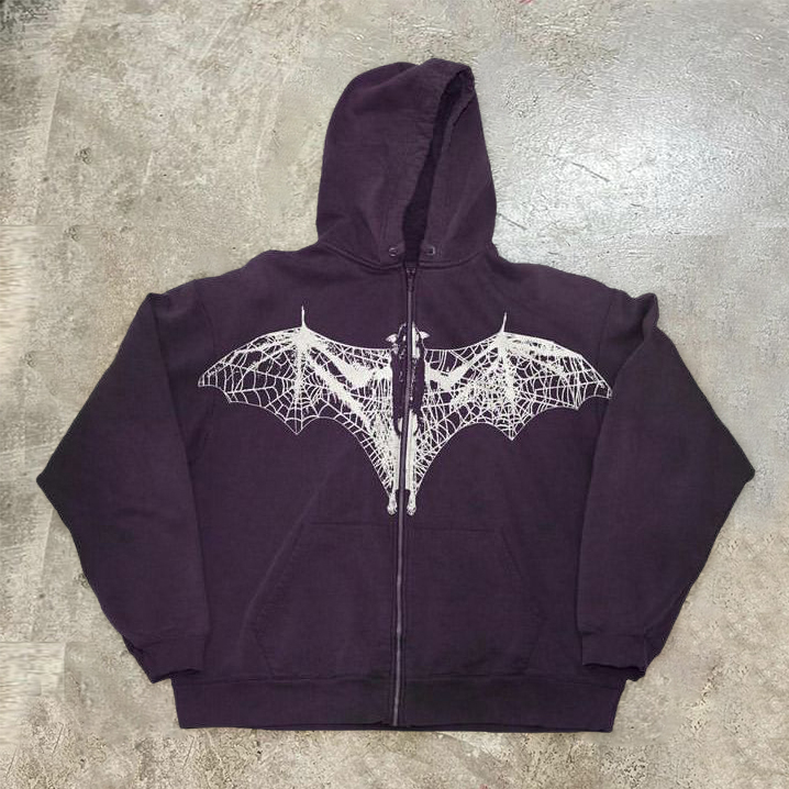 Street-inspired bat-print long-sleeve hoodie