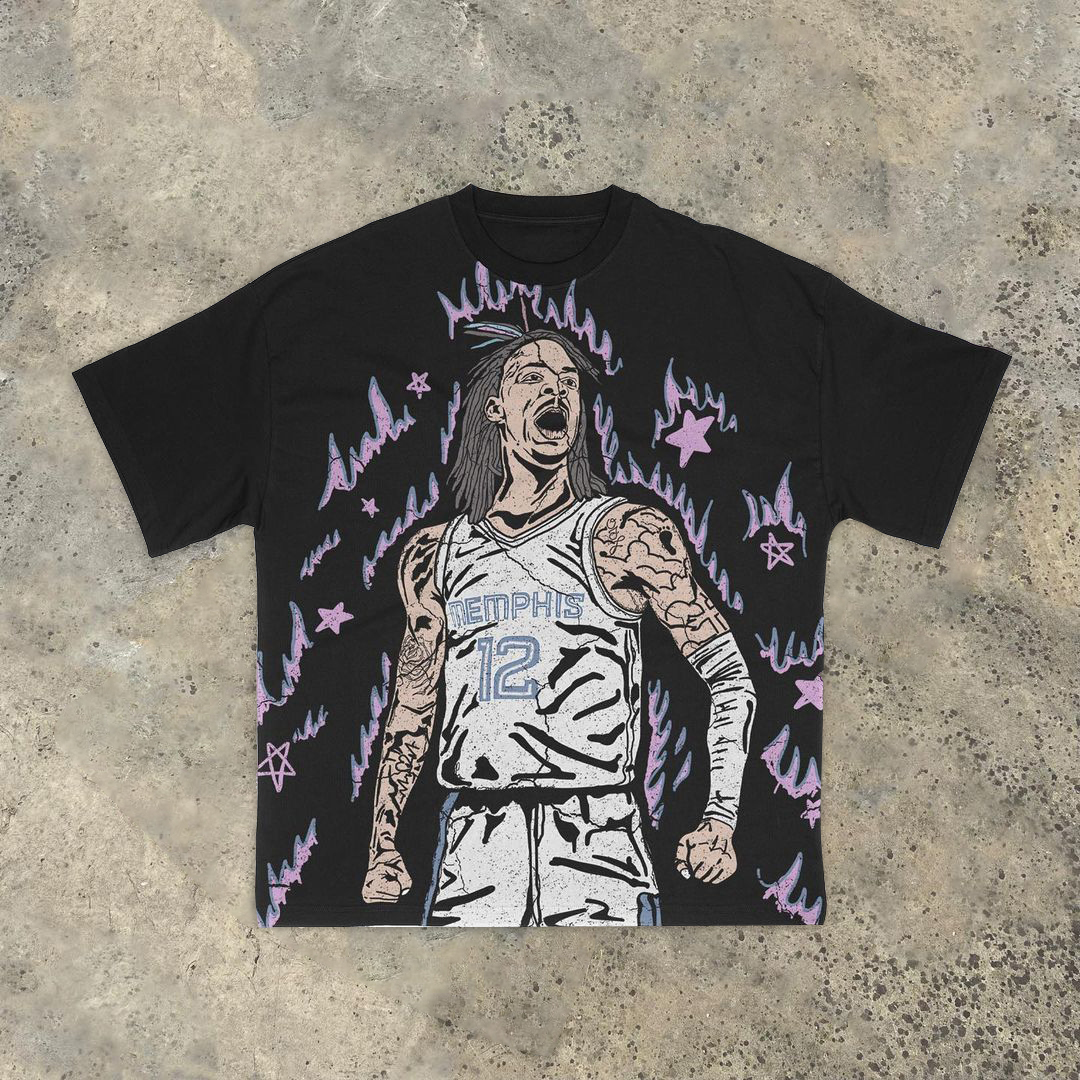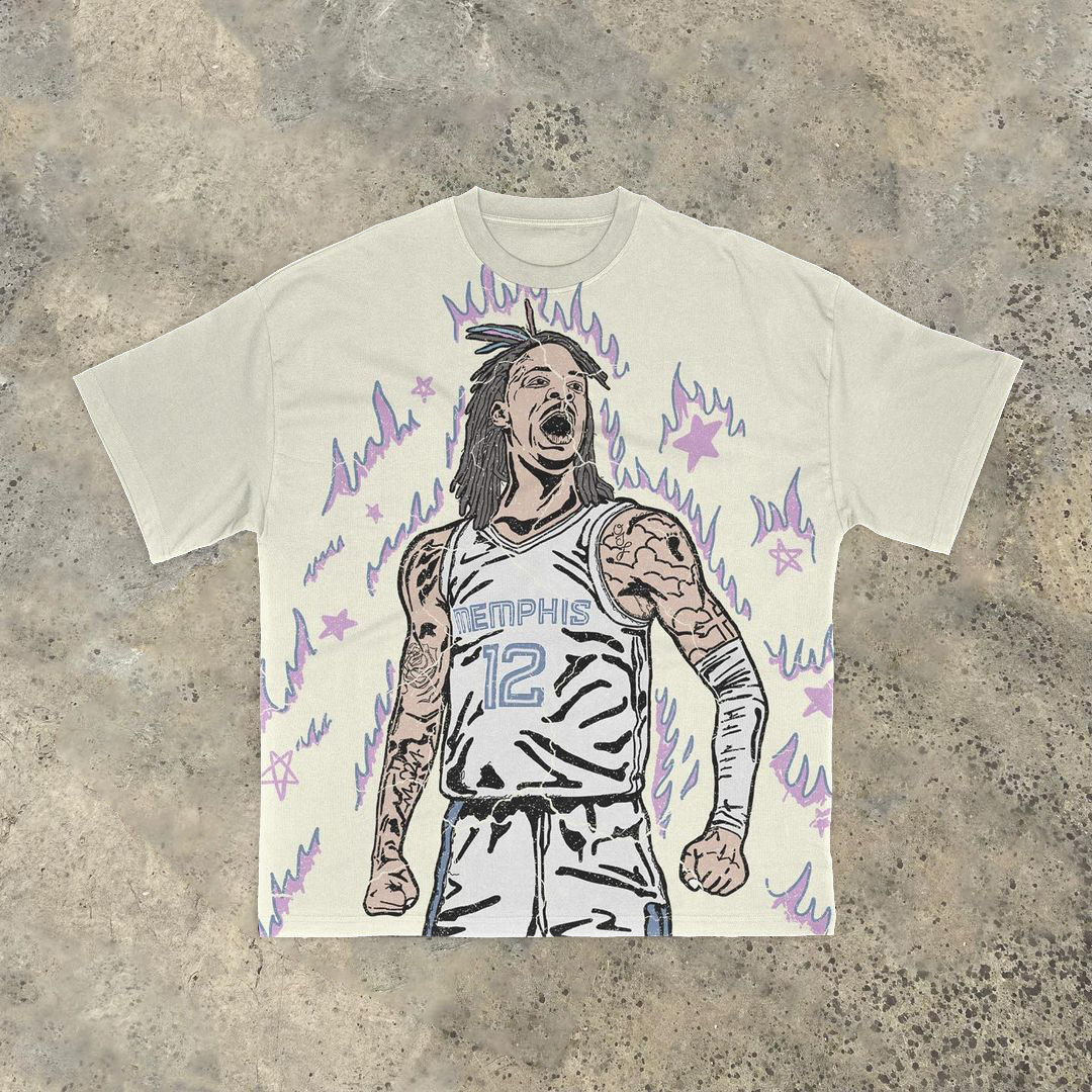Tide brand retro fashion hip-hop print short-sleeved T-shirt